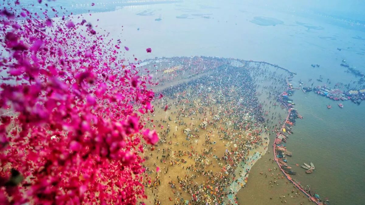 महाकुंभ 2025 के अंतिम अमृत स्नान पर हेलीकॉप्टर से श्रद्धालुओं पर हुई पुष्पवर्षा, लगे जयकारे