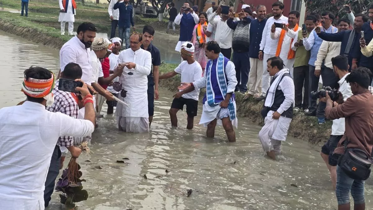 दरभंगा। : बिहार में मखाना खेती को राष्ट्रीय स्तर पर पहचान दिलाने की दिशा में एक और महत्वपूर्ण कदम बढ़ाया गया है। केंद्रीय कृषि मंत्री शिवराज सिंह चौहान रविवार को राष्ट्रीय मखाना अनुसंधान केंद्र दरभंगा पहुंचे। जहां उन्होंने न केवल किसानों के साथ संवाद किया बल्कि स्वयं मिथिला की पारंपरिक वेशभूषा धोती-कुर्ता पहनकर मखाना की बीज बोआई भी की। इस दौरान किसानों की समस्याओं को सुना और समाधान का भरोसा भी दिलाया।
